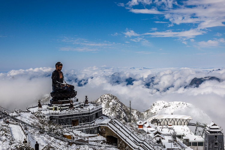 Gunung Fansipan, sebagai puncak tertinggi di Vietnam, menjadi salah satu destinasi favorit untuk menikmati salju. Fenomena ini biasanya terjadi antara Desember hingga akhir Januari, ketika suhu Sapa mencapai titik terdingin. Namun, setiap musim di Gunung Fansipan memiliki pesona yang berbeda. Di musim semi, bunga sakura, aprikot, dan azalea bermekaran dengan warna cerah. Musim panas dihiasi mawar merah yang indah, sedangkan musim gugur memperlihatkan sawah menguning siap panen.